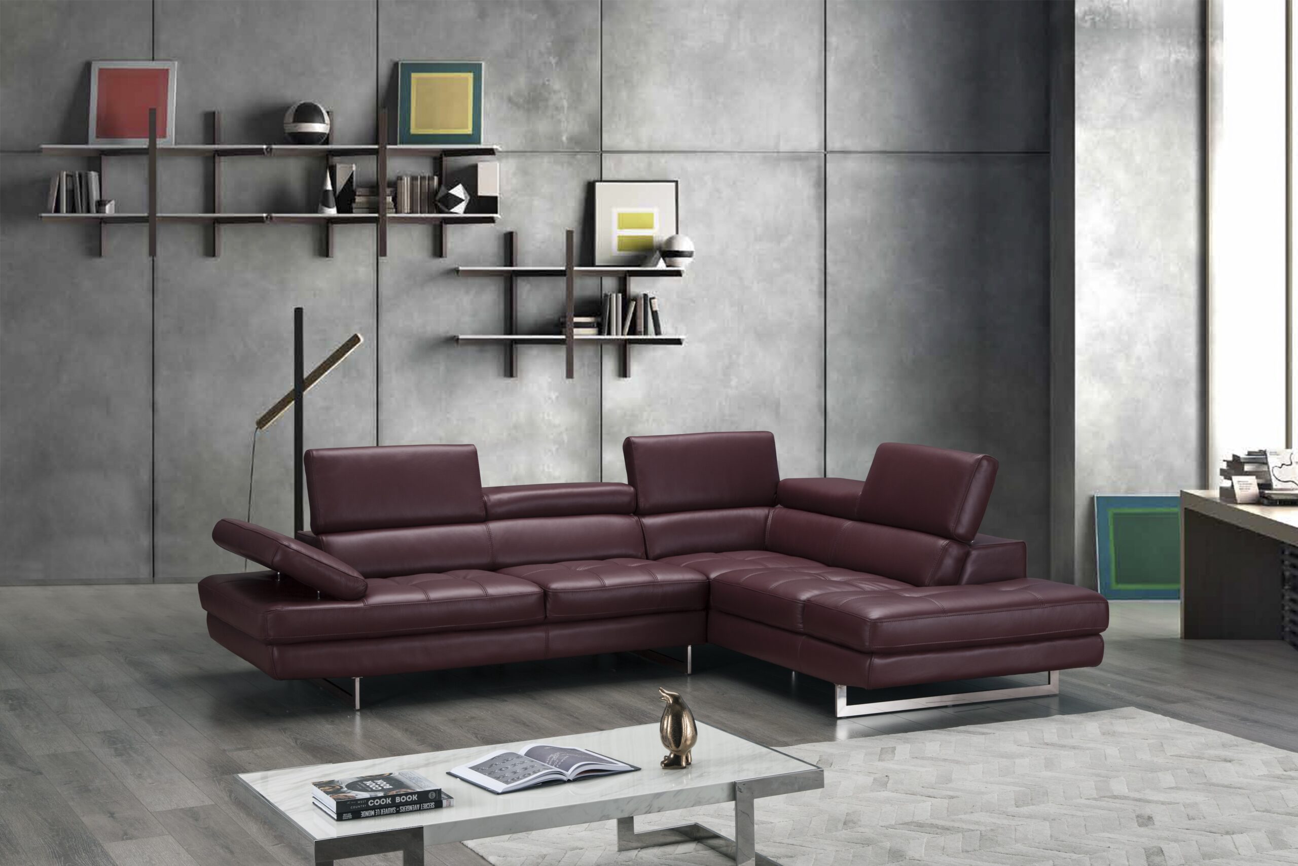 A761 Italian Leather Sectional Maroon In Right Hand Facing