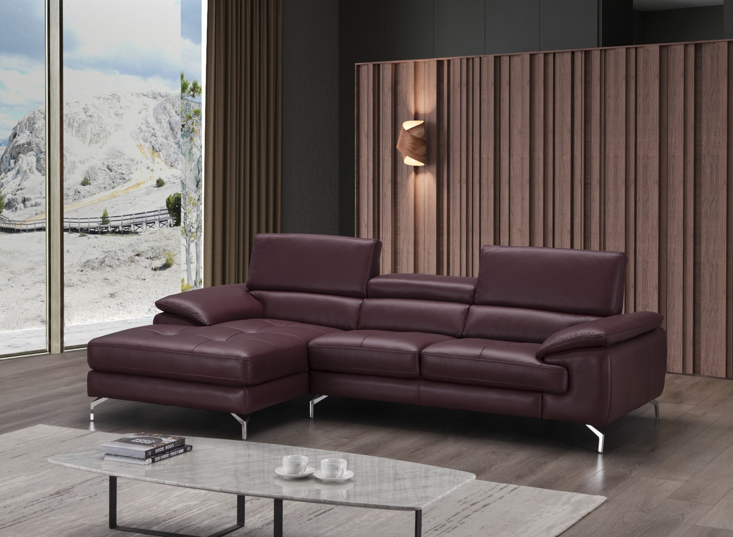 | Option | A973B Italian Leather Mini Sectional Left Facing Chaise in Maroon |