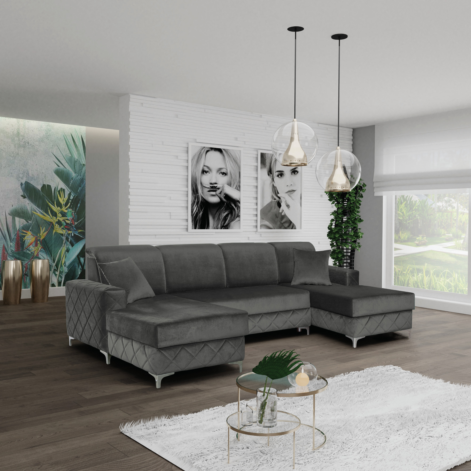 - VELVET SEATING: With velvet seating, this chaise sectional is designed for your comfort. The thick seat and back cushions will wow you and your friends with the level of coziness this seating provides.