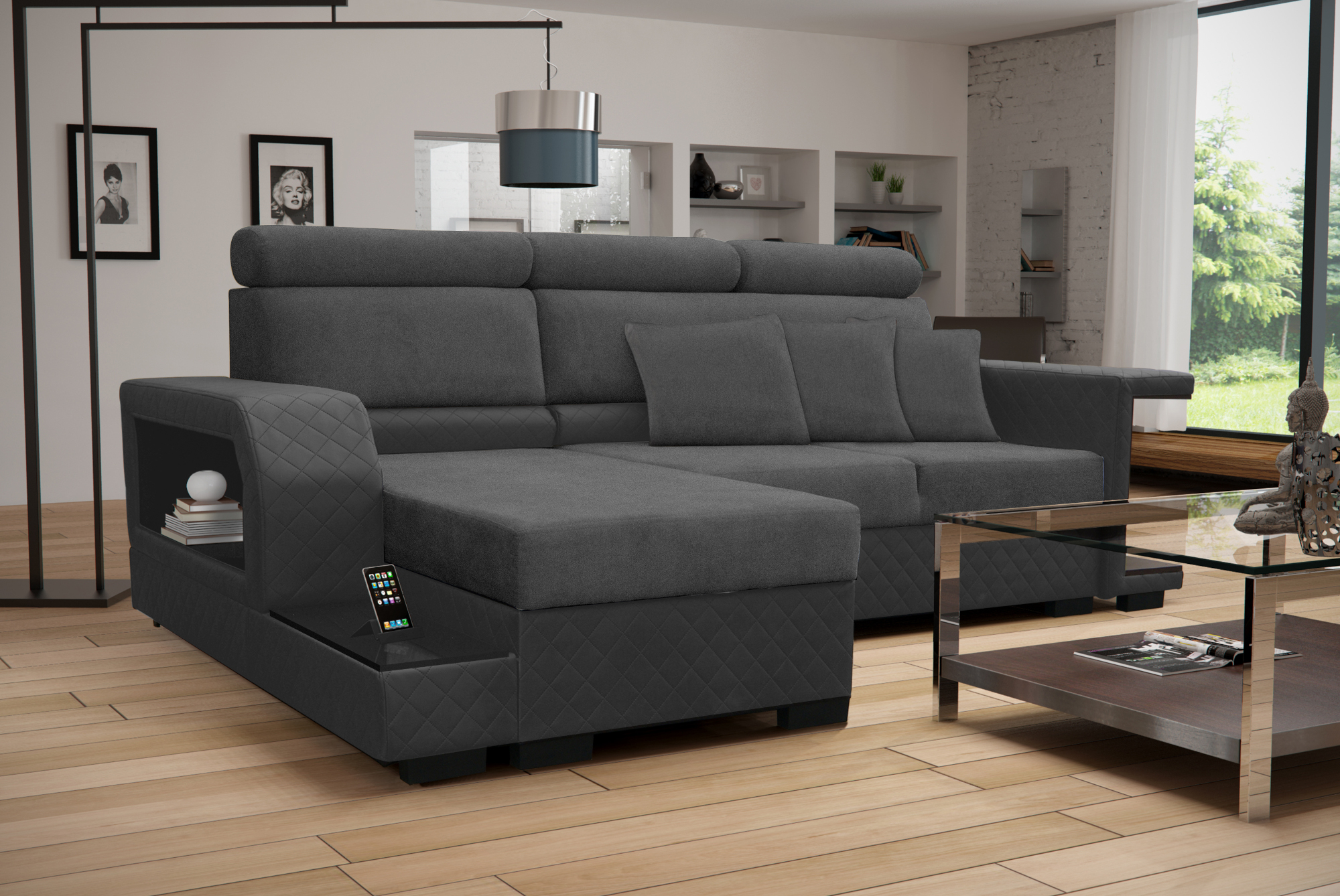 The Amaro Left-Facing Sectional Sofa is modern design to bring complete functionality to your home. Comfort, design and long term quality are what you can count on. With storage space underneath left-facing chaise and shelves to hold your valuables.