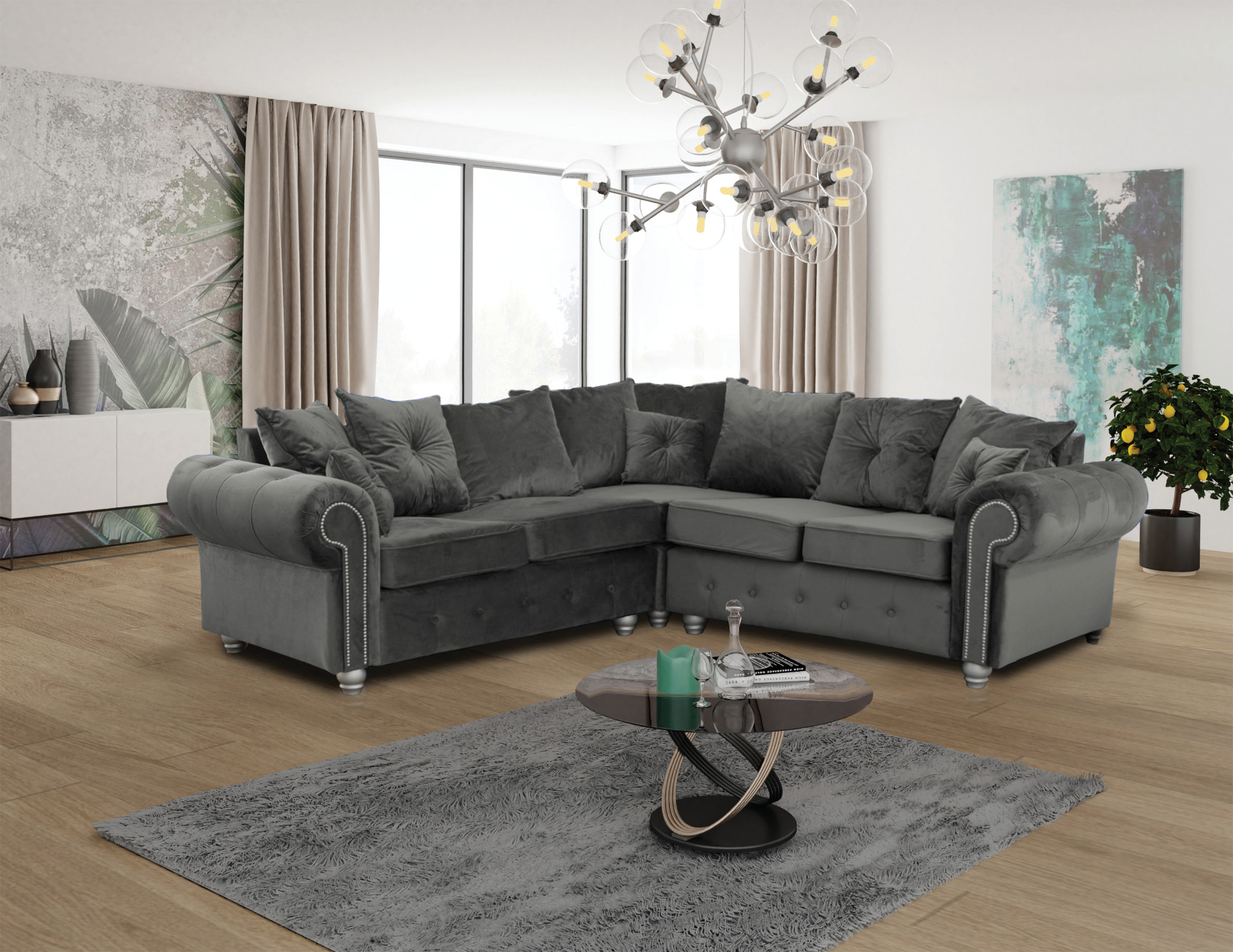 This corner sofa with nailhead trims is very modern and exotic. It has removable cushions that gives it a comfortable feel. The high quality and neutral colors of this fabric will give your living space the right vibe and match with any other furniture in your living space.