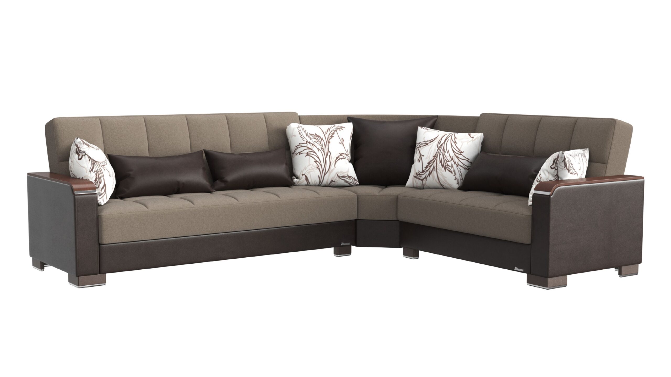 - FASHIONABLY CONVENIENT: With one swift motion, transform this Wood Trimmed Sectional into a sleeper that measures in at 74” x 47.2 ” + 50.4” x 47.2” or utilize the included storage compartments for your very own storage needs. ASSEMBLY made easy in 30 minutes or less! DISCLAIMER: ITEMS IN IMAGES SOLD SEPARATELY
