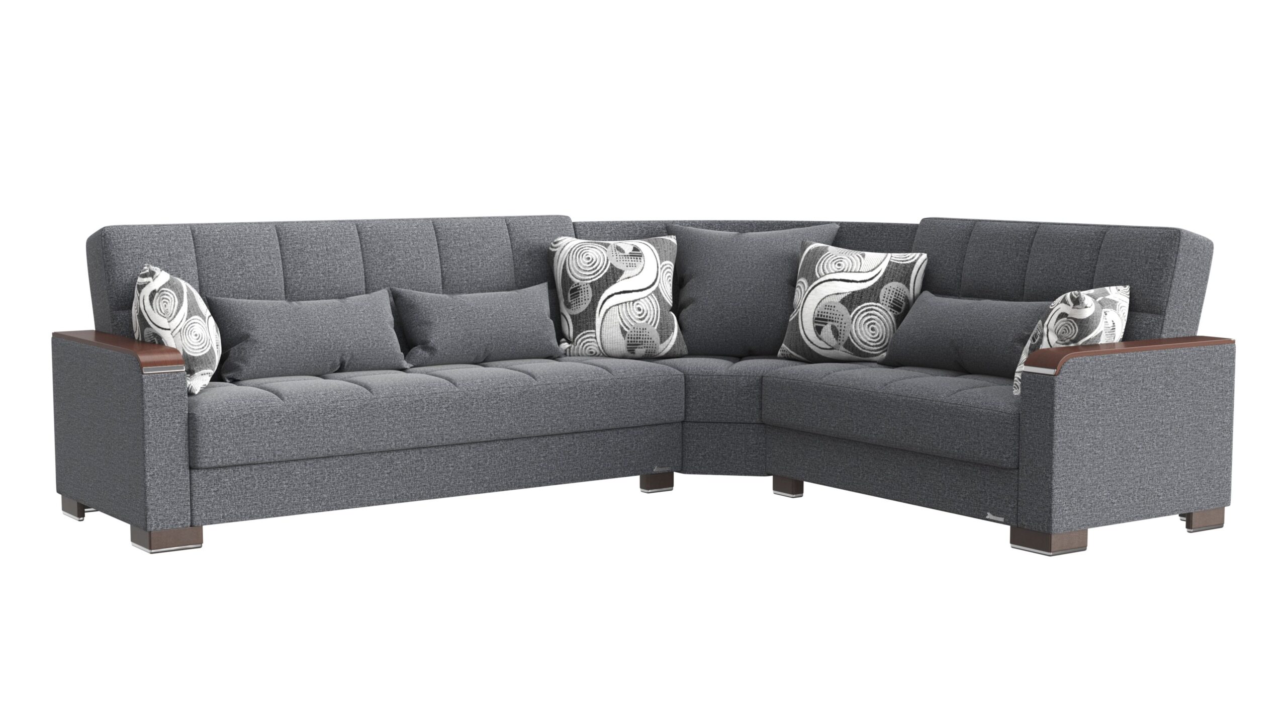 Ottomanson Armada X Collection Upholstered Convertible Wood Trimmed Sectional with Storage, Grey Microfiber