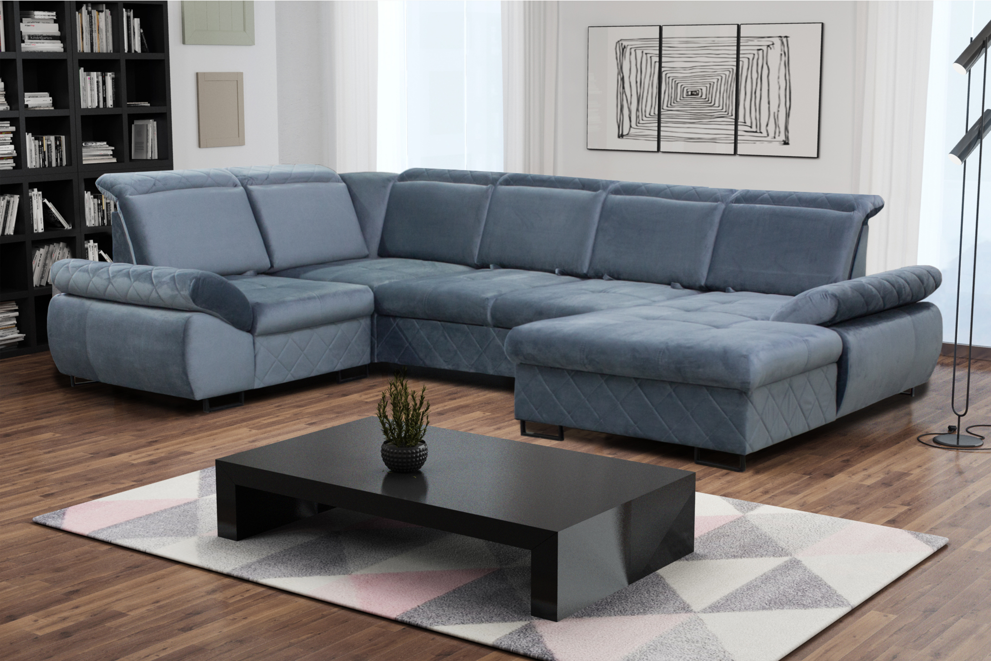 Complete your living space with this large sectional and complement it with a modern and deluxe look. This new to the market sectional has many features and adjusts to various positions, making it unique from any other sofa. The back of this piece slides back and forth with big storage space turning into a bed. It has strong metal legs that give it a comfortable feel.