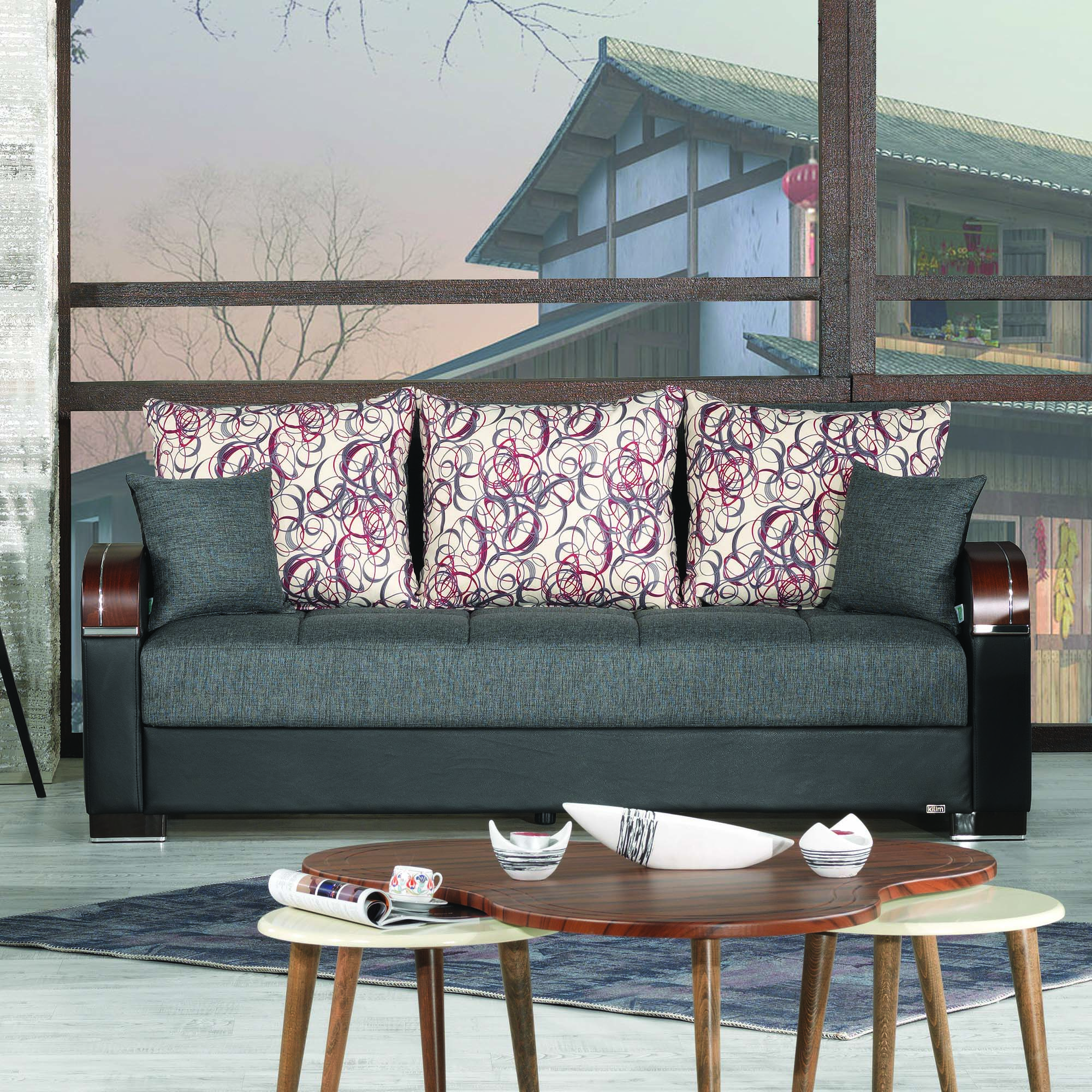 Ottomanson Mobimax Collection Upholstered Convertible Armchair with Storage, Black-PU