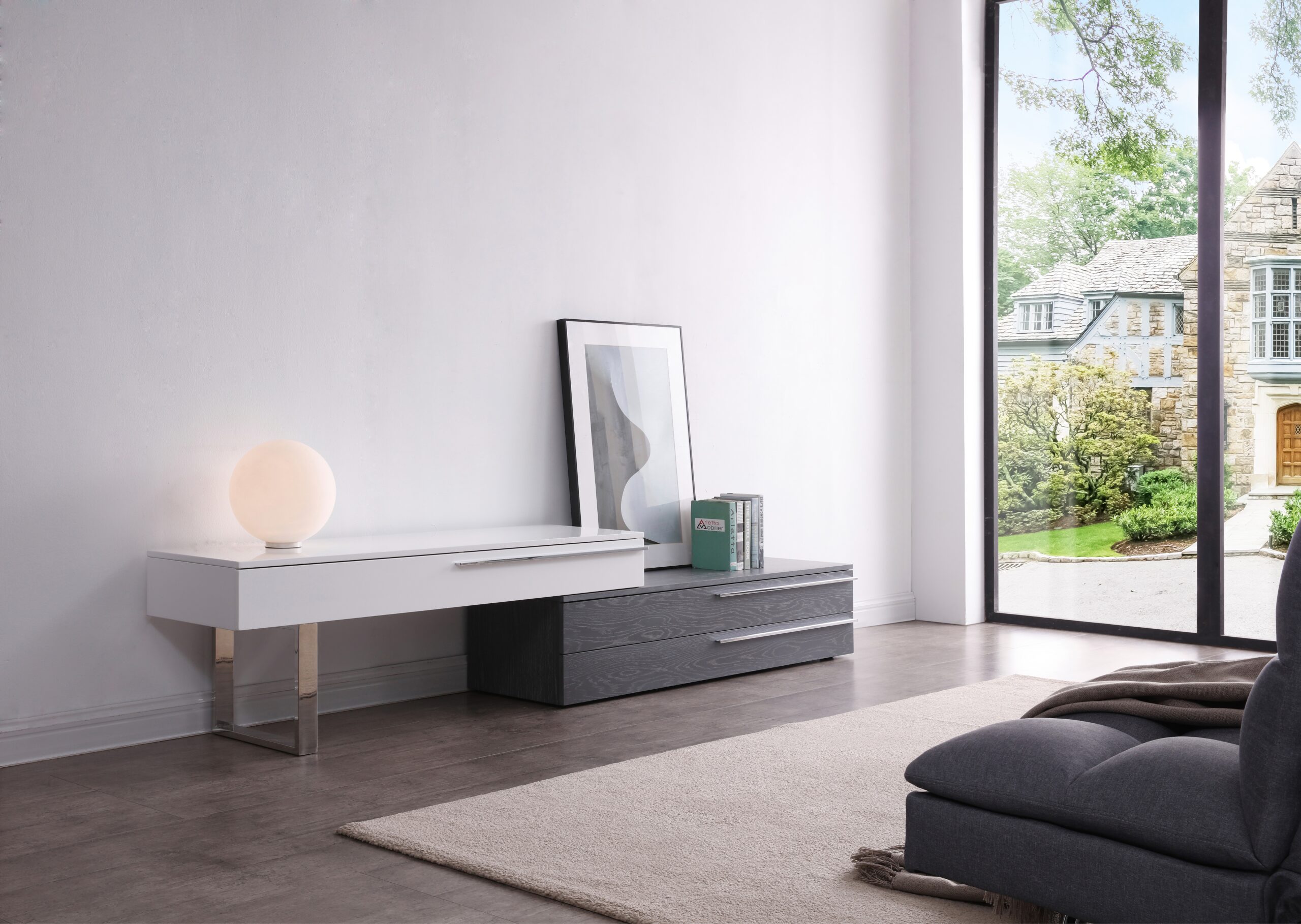 CE Hudson TV Base in Grey & White