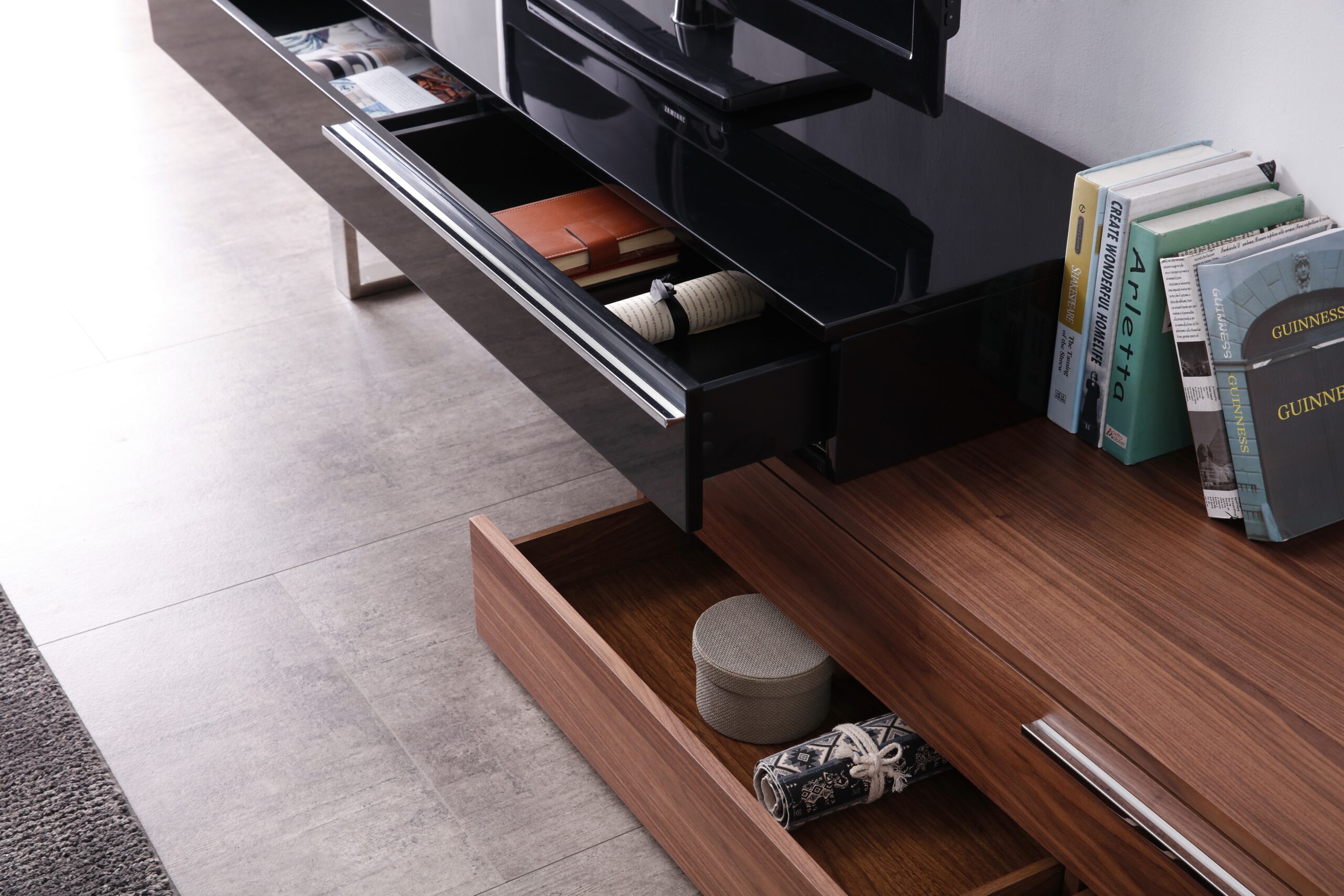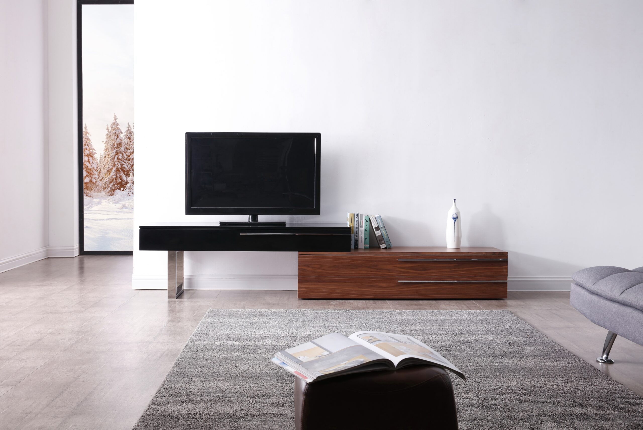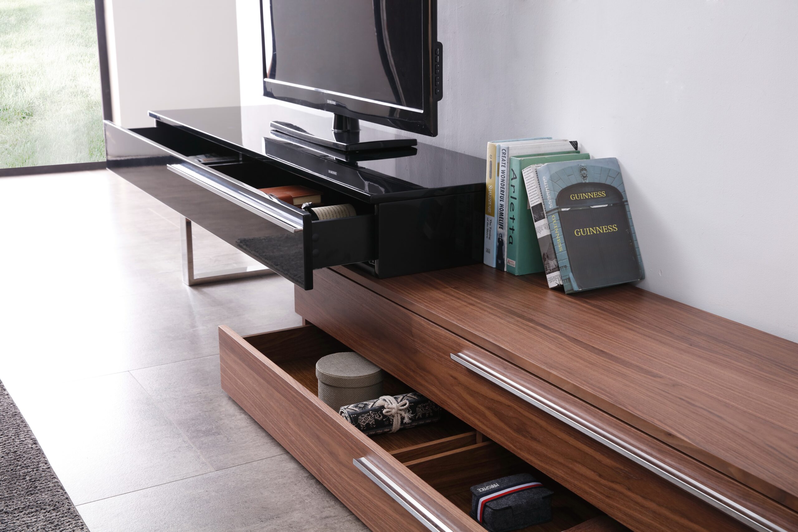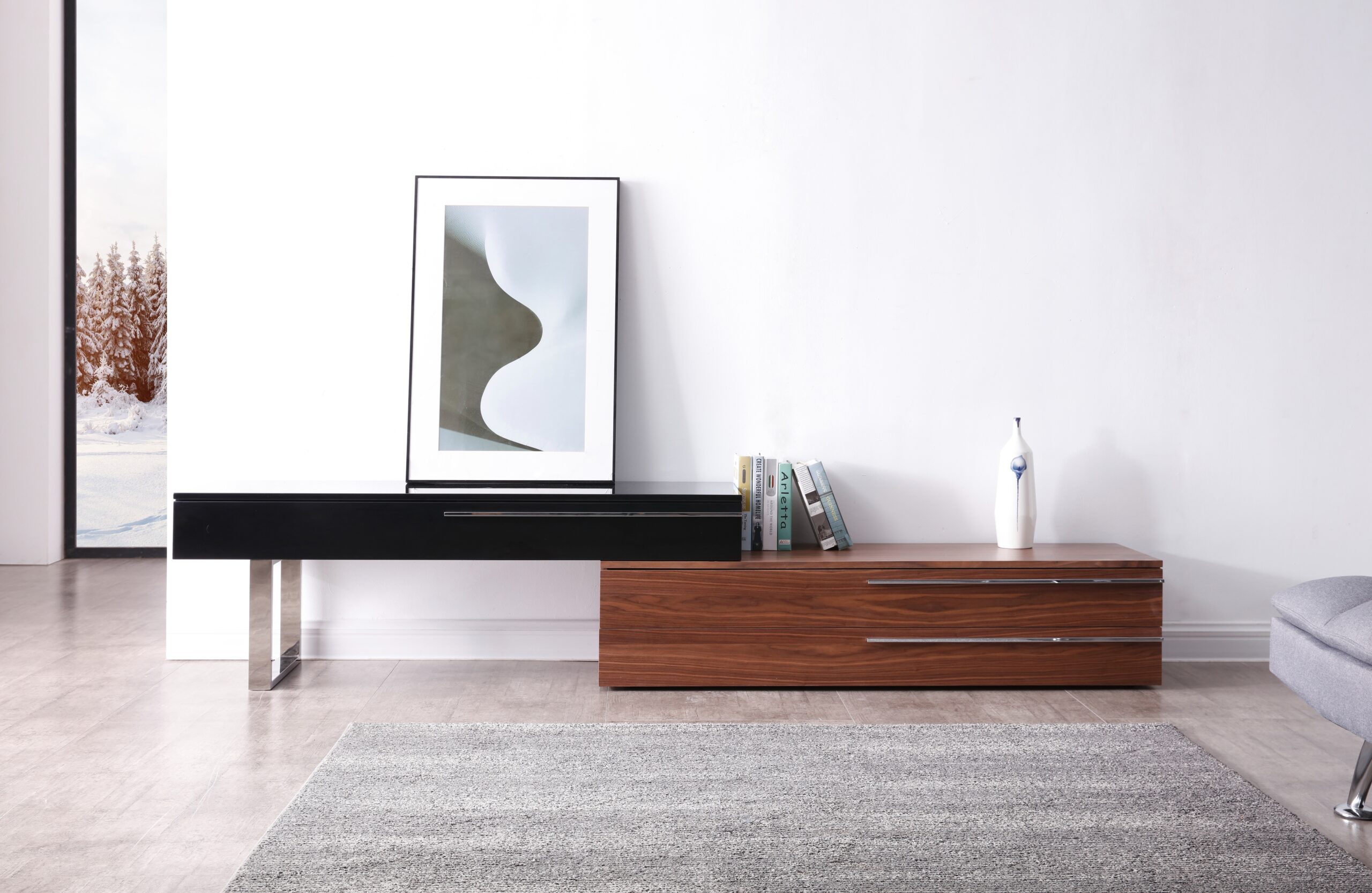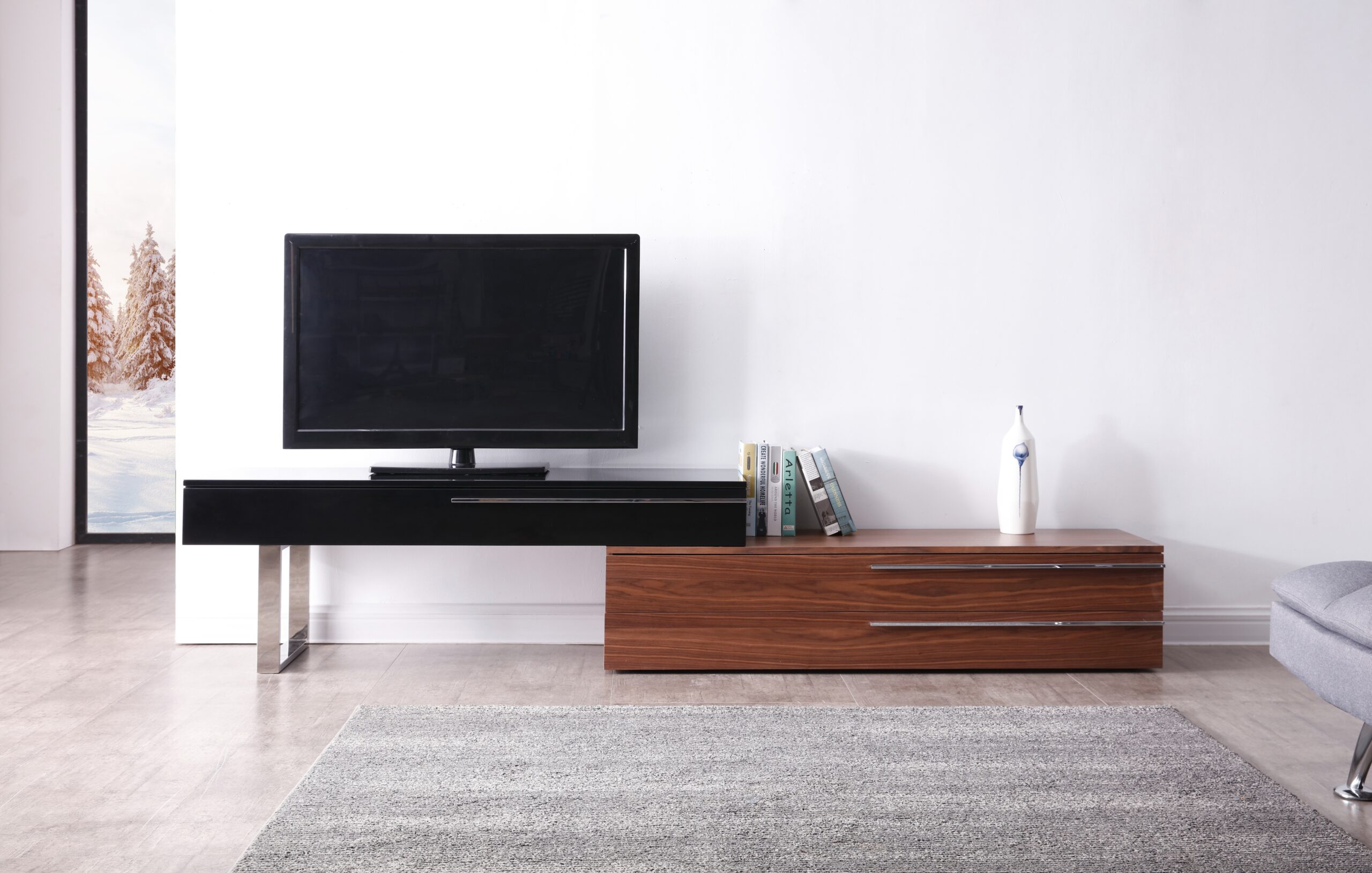 CE Hudson TV Base in Walnut & Black