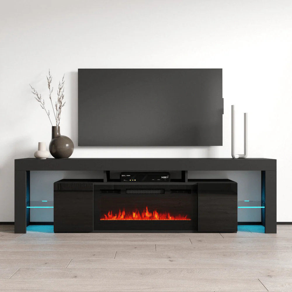 - Soleo BL-EF Electric Fireplace 79″ TV Stand – Modern TV Stand