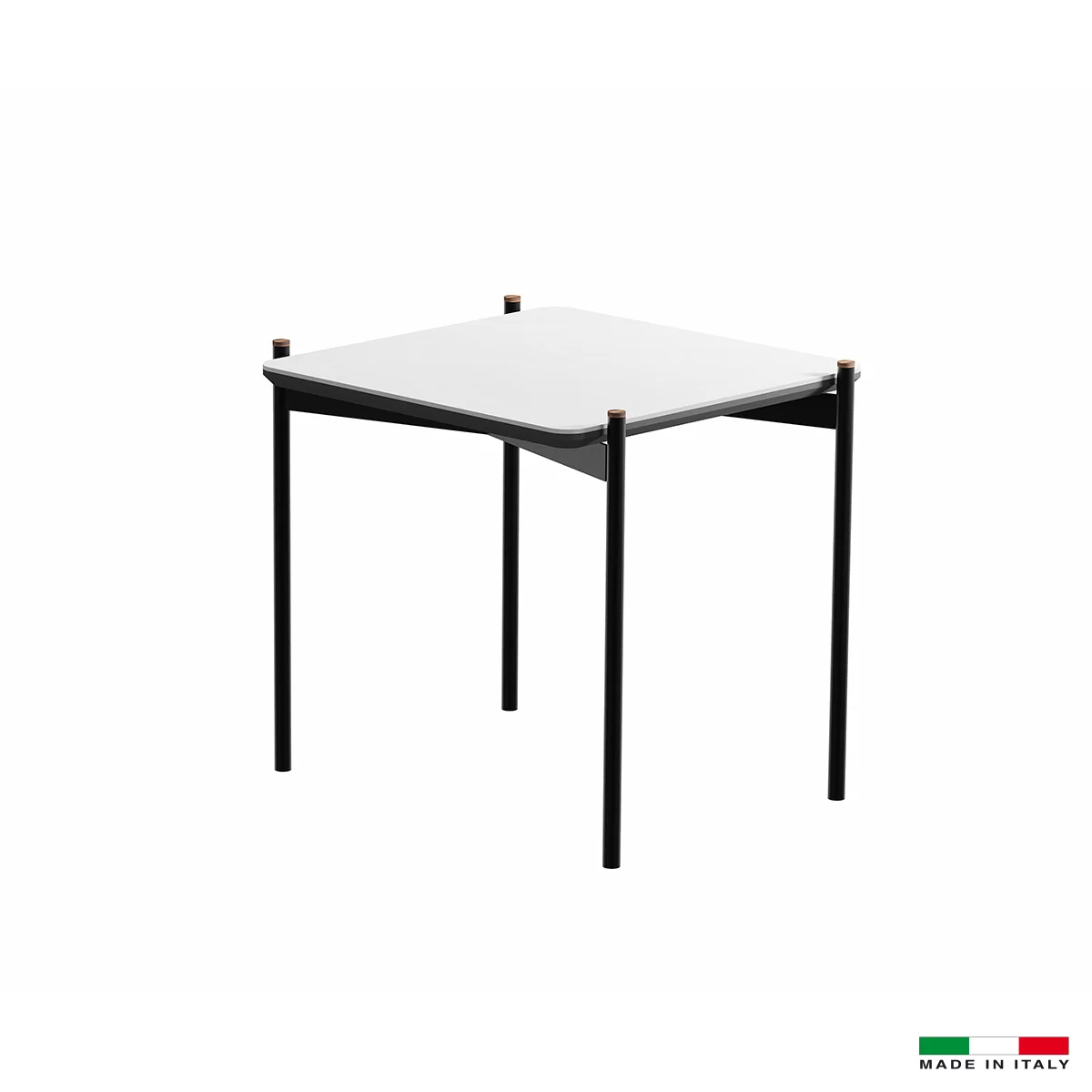 The sturdy metal legs, finished with warm walnut caps, create a beautiful contrast that blends contemporary design with natural materials. With its compact, versatile size — Length: 20″ x Depth: 20″ x Height: 20″ — the Rocco ET S is perfect as a side table for a sofa, armchair, or bedside, offering style and practicality.