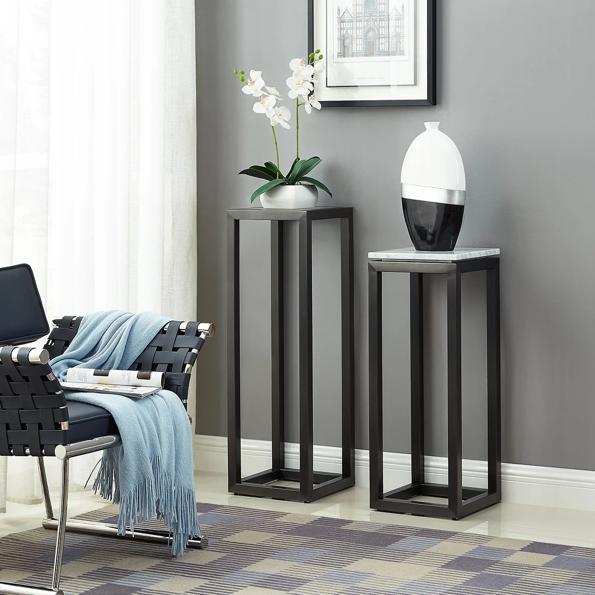The brushed Gunmetal steel frame provides a sleek, modern contrast while ensuring durability and stability. With compact yet impactful dimensions — Length: 12″ x Depth: 12″ x Height: 31″ — the Stud 38 BRU is ideal for showcasing decorative objects, plants, or art in any contemporary or transitional space.
