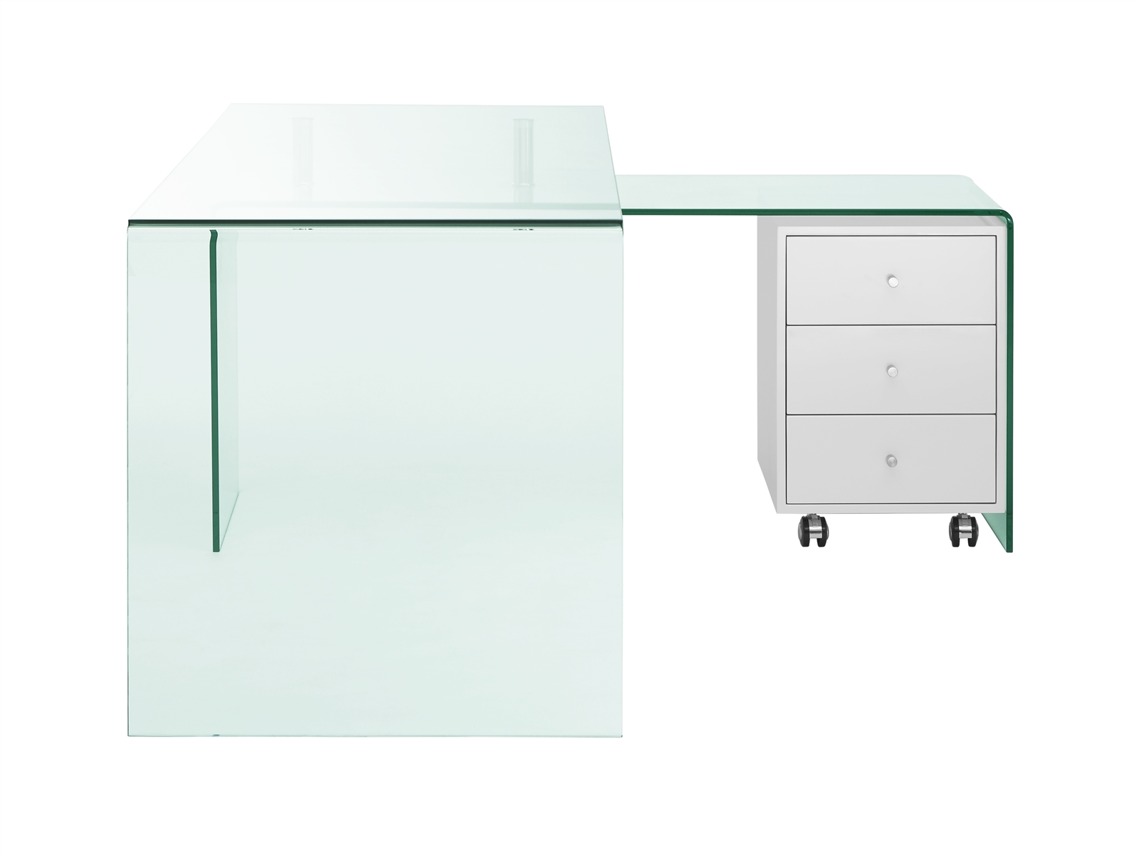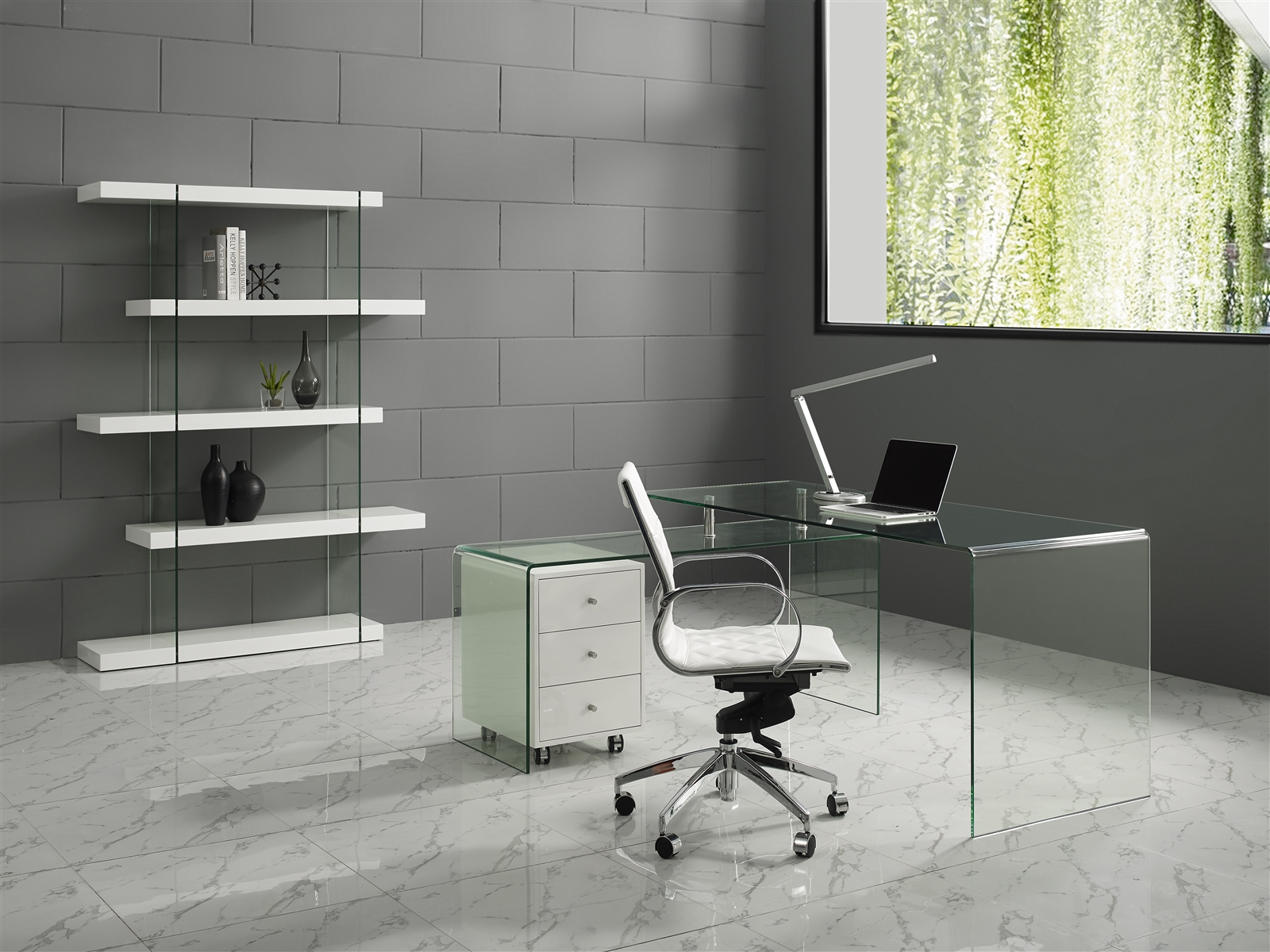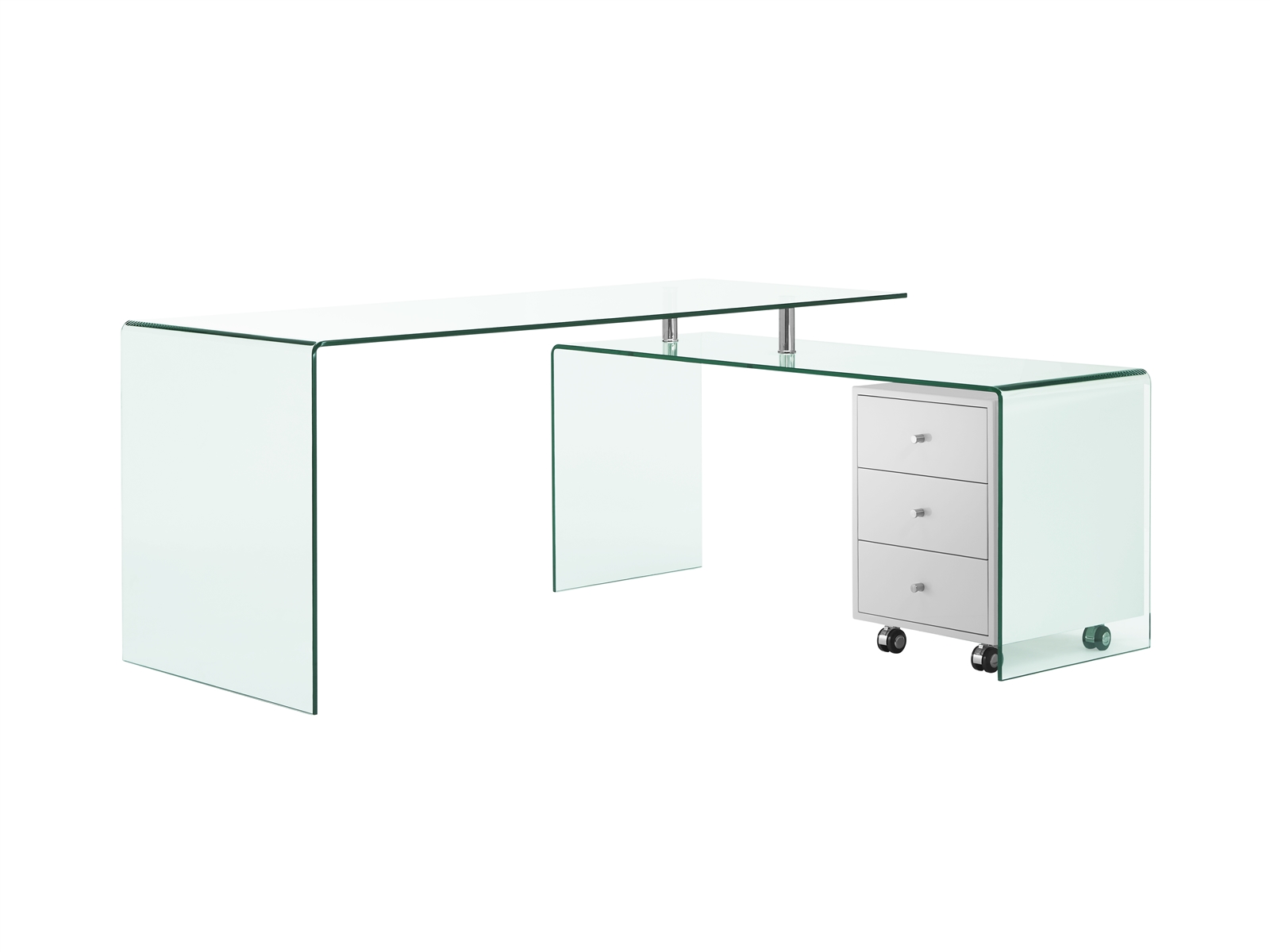 The Casabianca Home Rio office desk in clear glass with storage offers a blend of adaptable style and comfort boasting a modern design that seamlessly complements your home decor. This Rio office desk features three glider cabinets adding elegance with functionality to your space. Our Casabianca Home Rio office desk is manufactured using quality materials that will last for many years to come and is backed by our 1 Year limited warranty against manufacturer defects. Larger tabletop: 63″ L x 27.5″ W x 30″ H Smaller tabletop: 55″ L x 20″ W x 24″ H Cabinet: 18″ L x 20″ W x 20″ H Size: 63″ W x 55″ D x 29″ H