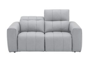 - Plush foam cushions are complemented with soft oatmeal fabric upholstery for a neutral look