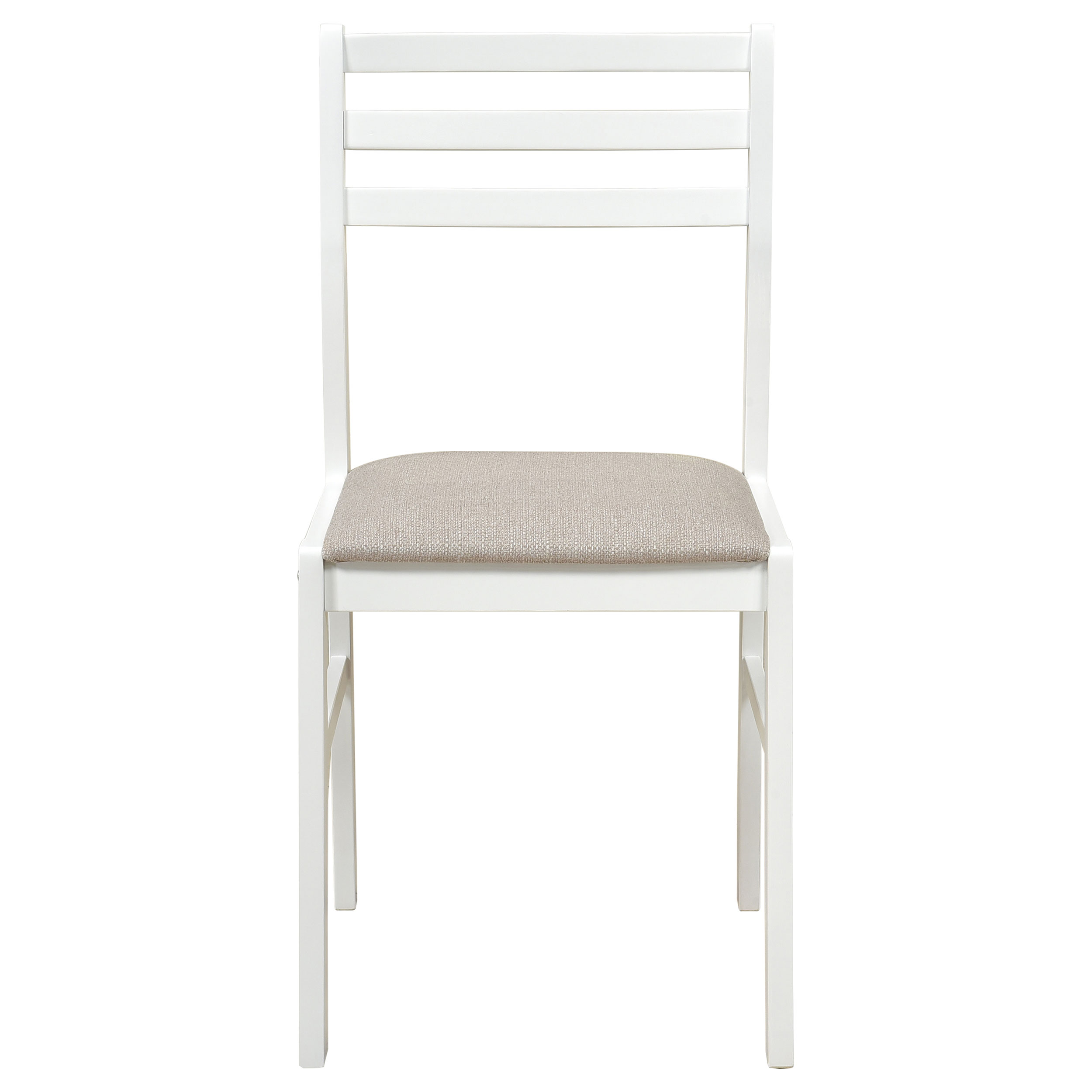 Elevate the tasteful look and feel of a dining nook or parlor with this chic, stylish dinette set. Its compact size and sleek design blend effortlessly into rooms of all shapes, sizes, and decor styles. Soft, cream colored upholstery covers the plush, padded seats of its two comfortable chairs. The classic glamour of its round, wooden table is enhanced by the versatile functionality of a convenient folding leaf. A deep, rich cappuccino finish and sleek, graceful lines complete the glamorous look of this elegant three-piece set.