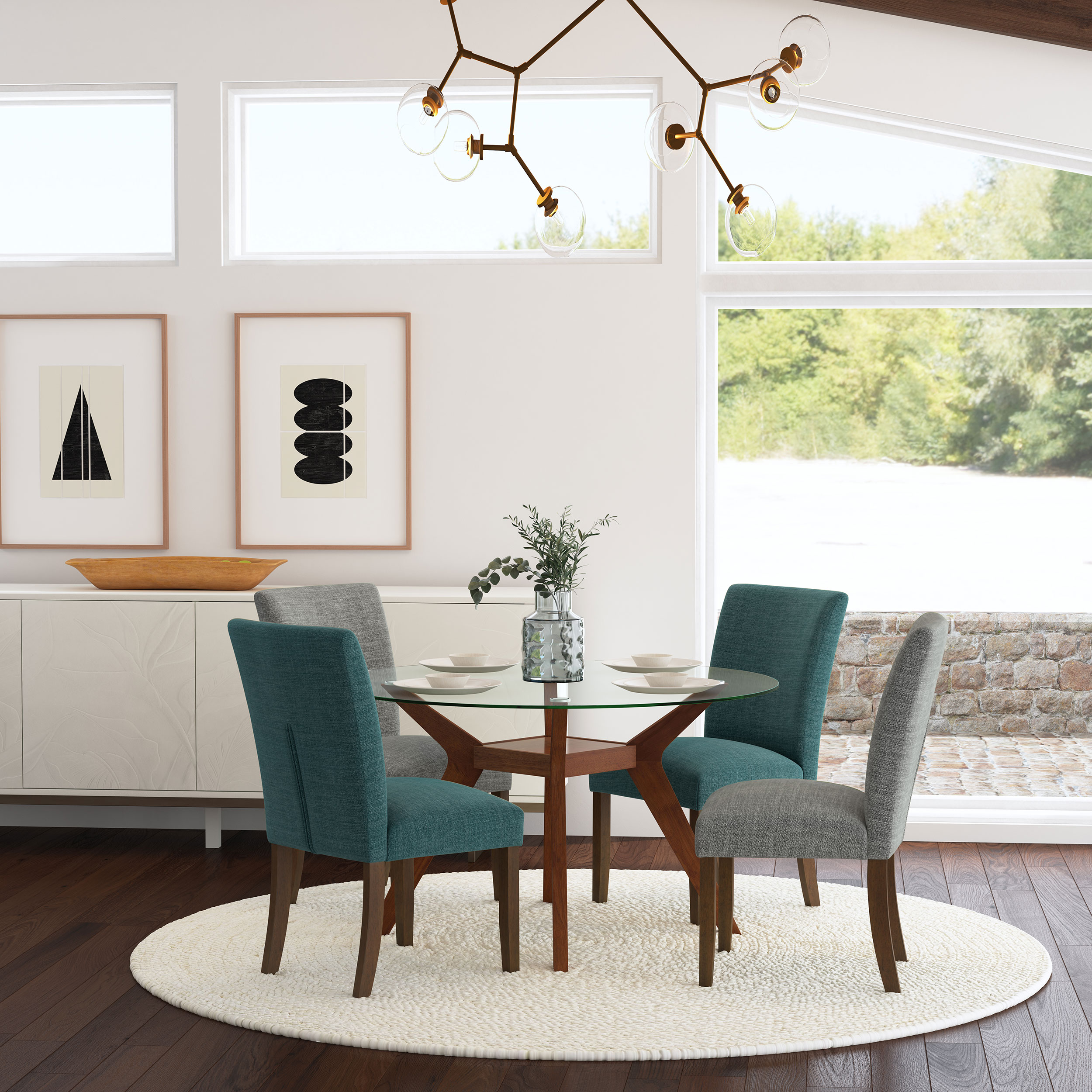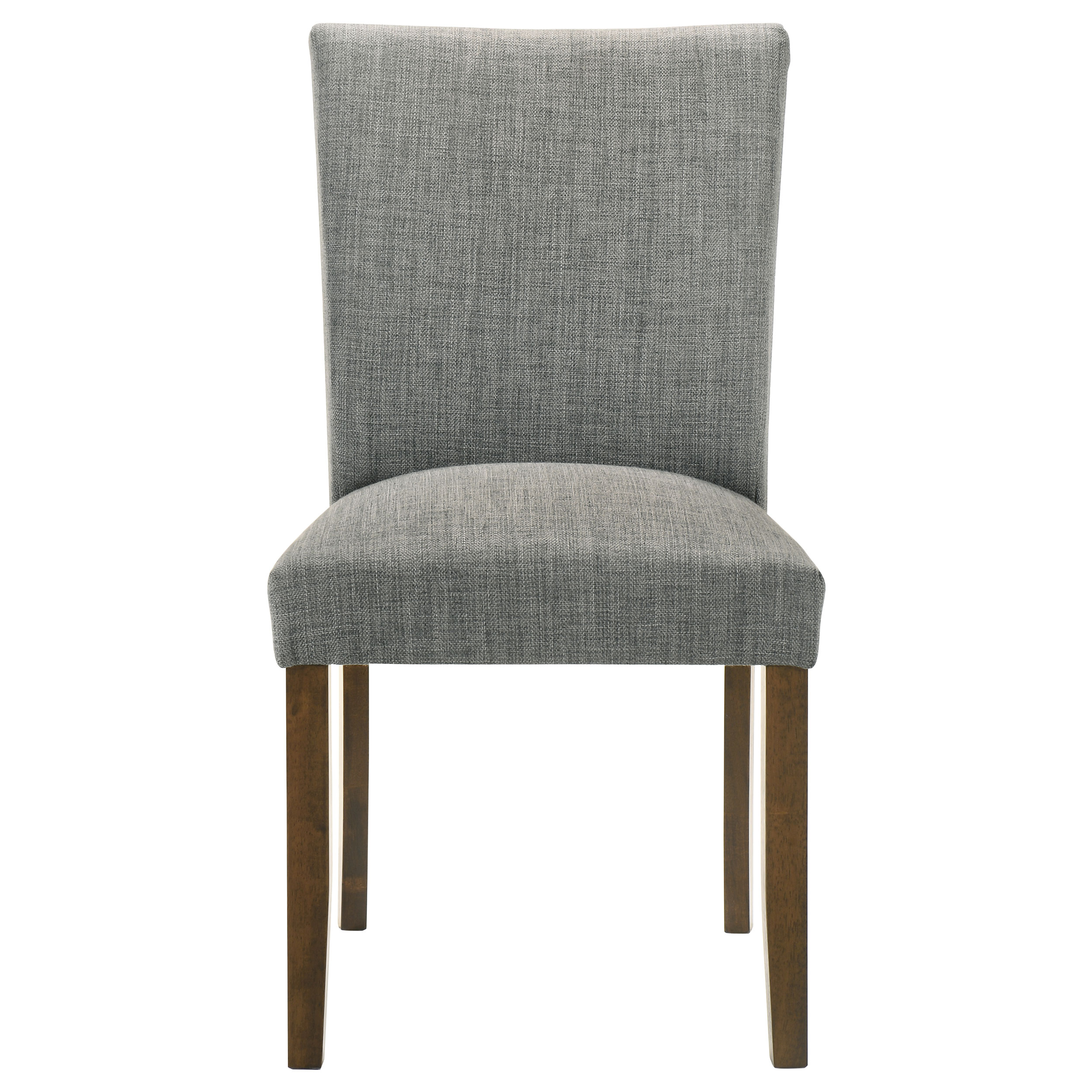 Upgrade your dining table with the fresh silhouettes and contemporary flair of this set of two modern side chairs. Each boasts an armless profile and lovely upholstery that creates the perfect touch of texture. Foam cushions provide exemplary comfort, perfect for everything from weeknight meals with the family to entertaining. Brown finish wood legs provide stability and create a hint of contrast against the upholstery. Choose this set for a new or existing dining table to bring a breath of fresh air.