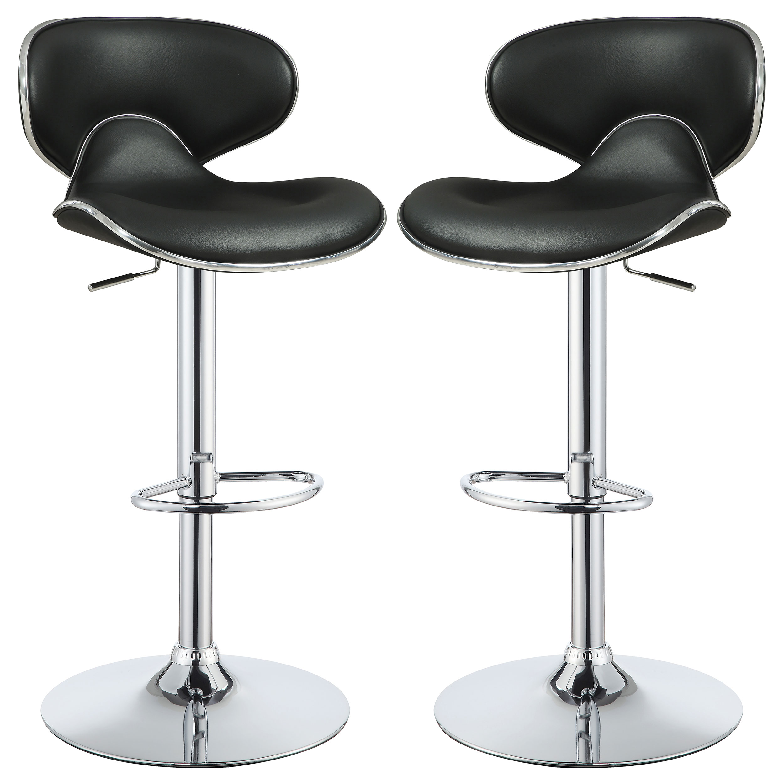 Elevate your home bar or kitchen island with the sleek and modern design of these adjustable bar stools. Designed for comfort and versatility, each stool features a contoured seat with integrated armrests and a curved backrest for ergonomic support. A pneumatic gas lift allows for effortless height adjustment, while a smooth swivel function enhances mobility. The sturdy metal base in a polished chrome finish includes a round footrest for added stability and relaxation.