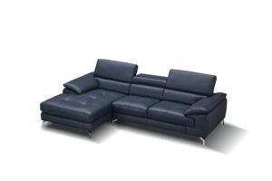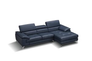 A973B Italian Leather Mini Sectional Left Facing Chaise in Blue