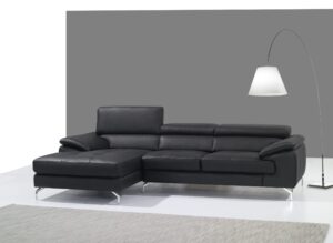 A973B Italian Leather Mini Sectional Left Facing Chaise in Black