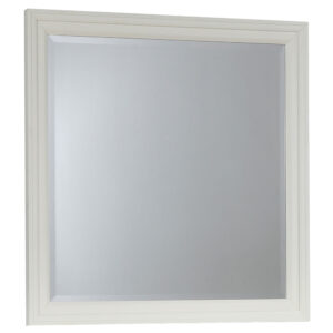$2,428.00Felicity Collection: A modern platform bed with white faux leather and sleek high-gloss case pieces featuring chrome accents.