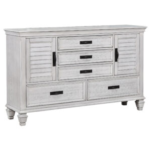 $1,192.00Update your space with the Franco dresser, featuring classic glamour and versatile storage with 5 drawers, 2 cabinets, and a rustic finish. -