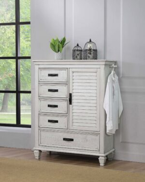 $3,852.00The Franco five-piece bedroom set blends rustic and tropical vibes, featuring a platform bed, nightstand, dresser, and chest with stylish shutter designs. -