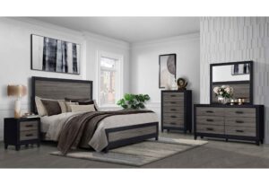 LISBON GREY/BLACK TWIN BED, DRESSER, MIRROR AND NIGHTSTAND