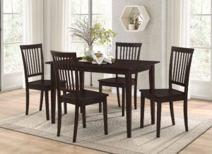 $562.00Embrace classic elegance with the Gomez five-piece dining set, featuring a sleek table and comfortable slat-back chairs in a rich cappuccino finish. -