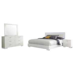 $1,953.00The Felicity bedroom set pairs a sleek panel bed with an LED dresser mirror and high gloss finishes for a clean, contemporary look. -