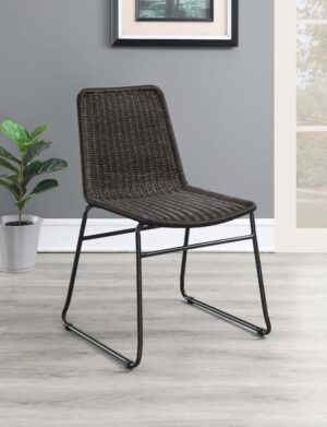 $427.00The Dacy transitional dining chair features handwoven brown faux rattan and a black metal frame, adding boho charm and vintage vibes to any space.