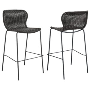 $549.00The Mckinley stool features a mid-century design with a brown faux rattan seat and slender sandy black legs, adding a boho touch to any space. -