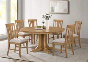 $1,558.00Hartville dining set blends timeless craftsmanship and casual warmth with a round pedestal table and slat-back side chairs in a soft natural finish.